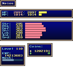 | EXP | Level: 110 EXP: 14213110 (for next level: 195776) Gain: 7217 EXP per post, 95.280 seconds to gain 1 EXP when idle |