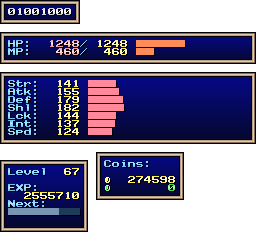 | EXP | Level: 67 EXP: 2555604 (for next level: 37268) Gain: 4060 EXP per post, 524.954 seconds to gain 1 EXP when idle |