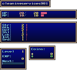 | EXP | Level: 1 EXP: 0 (for next level: 11) |
