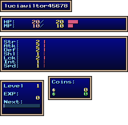 | EXP | Level: 1 EXP: 0 (for next level: 11) |
