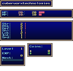 | EXP | Level: 1 EXP: 0 (for next level: 11) |