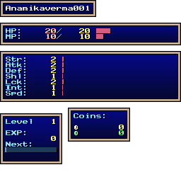 | EXP | Level: 1 EXP: 0 (for next level: 11) |