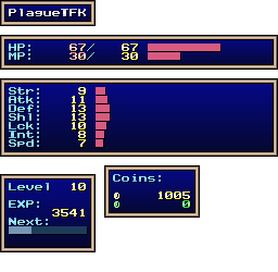 | EXP | Level: 10 EXP: 3541 (for next level: 873) Gain: 442 EXP per post, 354122.756 seconds to gain 1 EXP when idle |