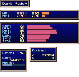 | EXP | Level: 43 EXP: 540700 (for next level: 24346) Gain: 2421 EXP per post, 2485.226 seconds to gain 1 EXP when idle |