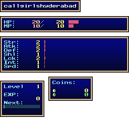 | EXP | Level: 1 EXP: 0 (for next level: 11) |