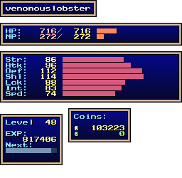 | EXP | Level: 48 EXP: 817369 (for next level: 6174) Gain: 2761 EXP per post, 1613.664 seconds to gain 1 EXP when idle |