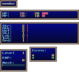 | EXP | Level: 1 EXP: 0 (for next level: 11) |