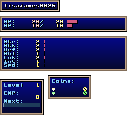 | EXP | Level: 1 EXP: 0 (for next level: 11) |