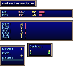 | EXP | Level: 1 EXP: 0 (for next level: 11) |