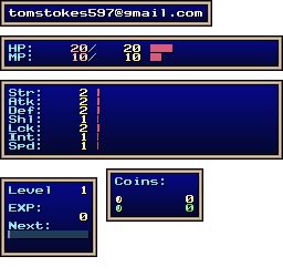| EXP | Level: 1 EXP: 0 (for next level: 11) |