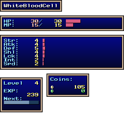 | EXP | Level: 4 EXP: 239 (for next level: 40) Gain: 179 EXP per post, 5168936.728 seconds to gain 1 EXP when idle |