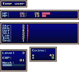 | EXP | Level: 3 EXP: 81 (for next level: 47) Gain: 121 EXP per post, 13996995.974 seconds to gain 1 EXP when idle |