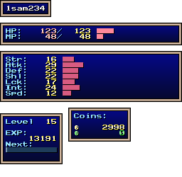 | EXP | Level: 15 EXP: 13190 (for next level: 3194) Gain: 638 EXP per post, 76512.709 seconds to gain 1 EXP when idle |